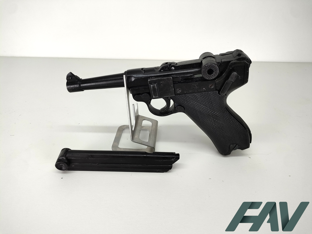 Ce Denix Luger P08 est inerte et non-fonctionnelle. Elle ne tire pas et ne peut chambrer aucune munition réelle ou à blanc. Elle est donc parfaitement adaptée pour la décoration, la reconstitution ou les tournages cinéma.