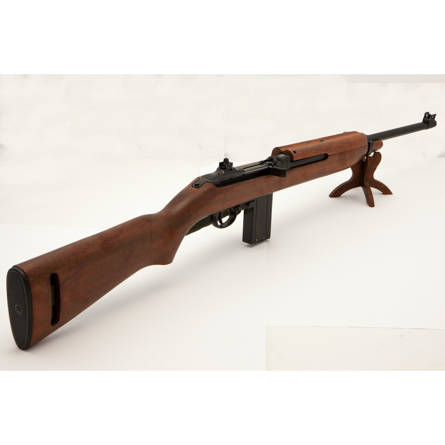 L’USM1 a été massivement utilisé par les parachutistes, les unités de reconnaissance et les troupes d’assaut américaines, notamment lors du débarquement de Normandie. Cette réplique respecte les lignes d’origine du fusil, avec son garde-main en bois foncé, sa bretelle en toile kaki typique des équipements GI, et son chargeur amovible. Elle intègre également un mécanisme mobile non fonctionnel, permettant de manipuler la culasse et simuler l’armement.